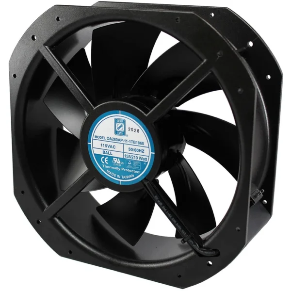Vierkante ventilator Tubeaxial 115VAC - 280mm L x 280mm H Bal 1300.0 CFM (36.40m³/min) 2 Draden
